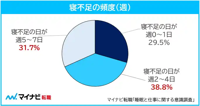 寝不足の頻度について聞いたところ、「週2~4日以上(38.8%)」が最多で、「週5~7日(31.7%)」と続いた。平均睡眠時間は6時間以上である一方、睡眠不足を感じている人も一定数以上いるようだ。【図1、2】※厚生労働省「健康づくりのための睡眠ガイド 2023」