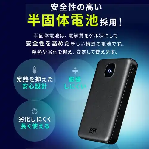 | 安全性の高い半固体電池とPD20W急速充電に対応したコンパクトモバイルバッテリー |