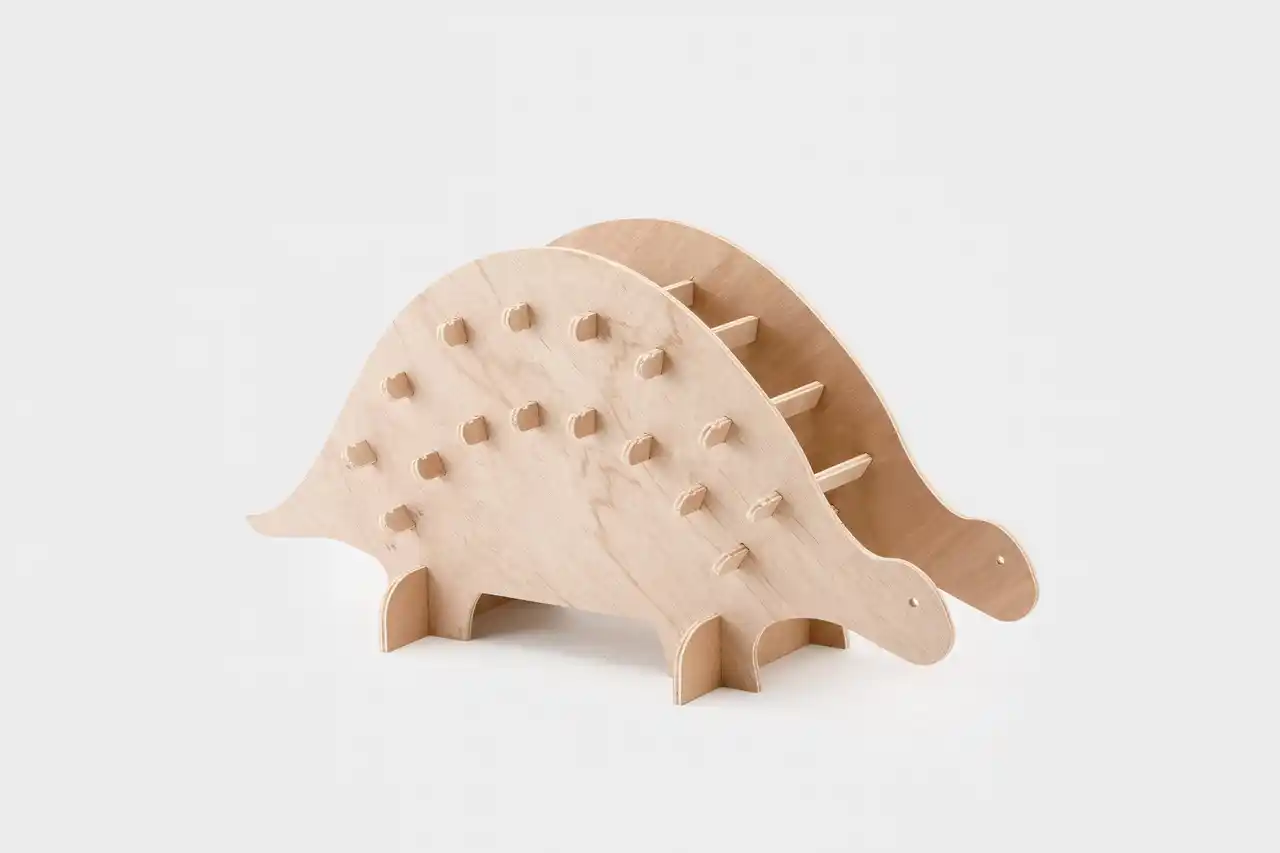 雨の日、ひょっこり現れるのは…カサを背負った恐竜です。今日も静かにあなたの傘をお預かりします。ちょっと憂うつな雨の日も、サウルスたちがいれば少しハッピーになるかもしれません。背中には約15本の傘を収納するコンパクトサイズ。置く場所の雰囲気に合わせて防水マットや人工芝を敷けば、床も濡れずに安心です。折りたたみ傘も引っ掛けやすい、工夫された差し込み棒が付いています。しかも、組み立ては簡単3ステップ!子どもでも迷わず完成できちゃう、やさしい設計です。 |