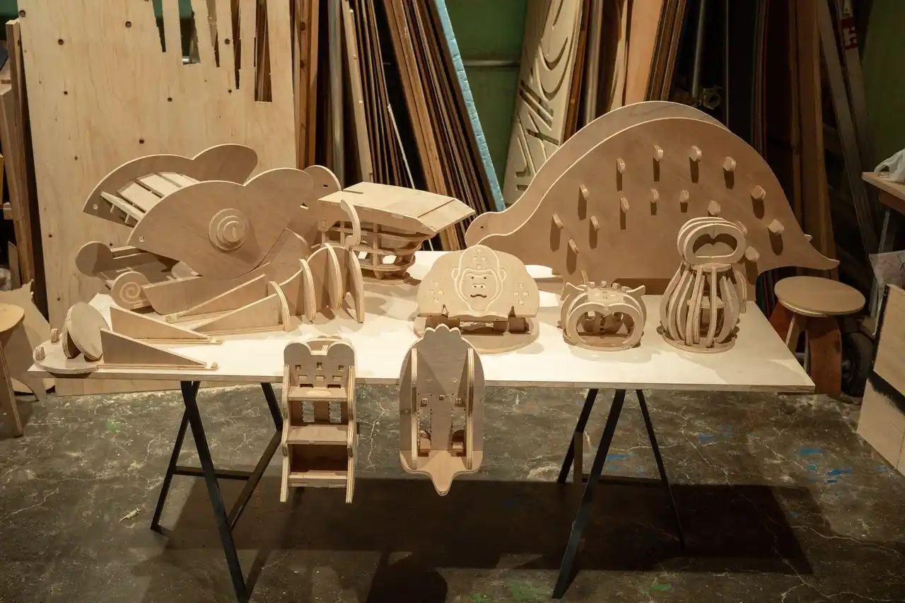 本プロジェクトは、「オフィスに棲まう動物たち」というテーマで、ShopBotを活用したデザインプロトタイピングを通して、アイデアを社会に届けるプロセスを体験すると同時に、オフィスという身近な作業環境に潜む行為や関係性を丁寧に分析、デザインする機会となりました。ShopBotの特性を活かした自由度の高い加工により発想を具体化し、日常のオフィス風景を少しユニークにデザインするプロダクトを提案しています。