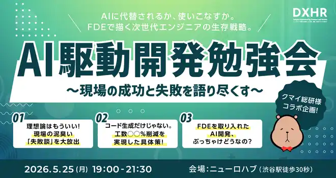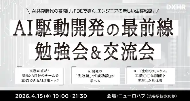DXHR株式会社(本社:東京都渋谷区、代表取締役:前田 一成、以下 DXHR)は、2026年4月15日(水)、当社が運営するコワーキングスペース「NeuroHub(ニューロハブ)」にて、エンジニア向けイベント「AI駆動開発勉強会&交流会」を開催いたしました。 |