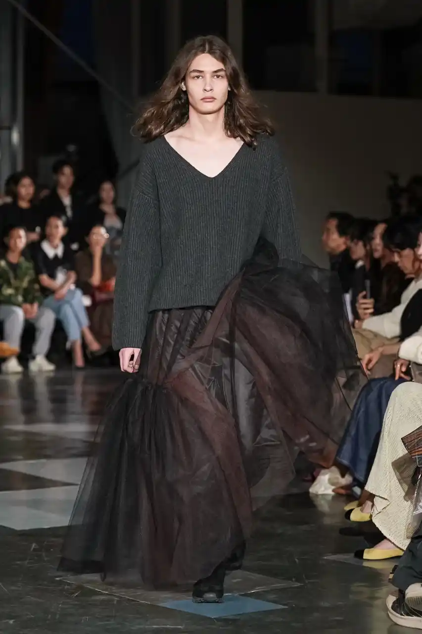 2026年4月21日(火)、東京都千代田区の科学技術館にて開催されたライブエキシビジョンでは、12名の男女のモデルによるランウェイ形式にて、デビューシーズンとなる2026年秋冬コレクションの主要アイテムを32ルック披露しました。 |