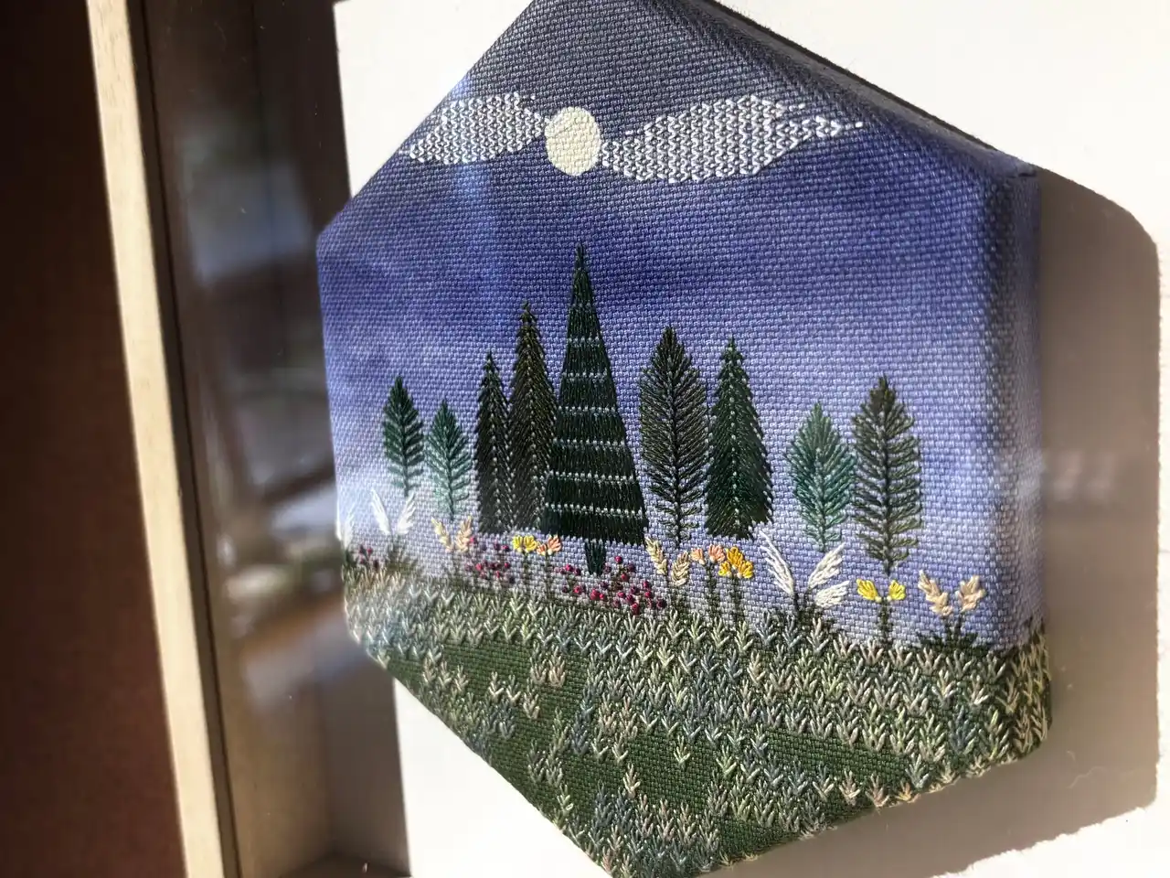 どこか懐かしい物語に出てくるような、野原や森、草花を想像しながら布を染め、糸を刺しています。 絵本の中にある様だけど、本当は過ごした日々のどこかでみて来たのかもしれない。澄んだ匂いや頬にあたる空気を思い出して、少し懐かしい気持ちになったりしながら、制作しています。 新緑の季節のお供になるようなアクセサリーやお散歩にちょうど良いバッグなどの布小物、森の物語を想像しながら制作した額や小箱などを展示いたします。 |