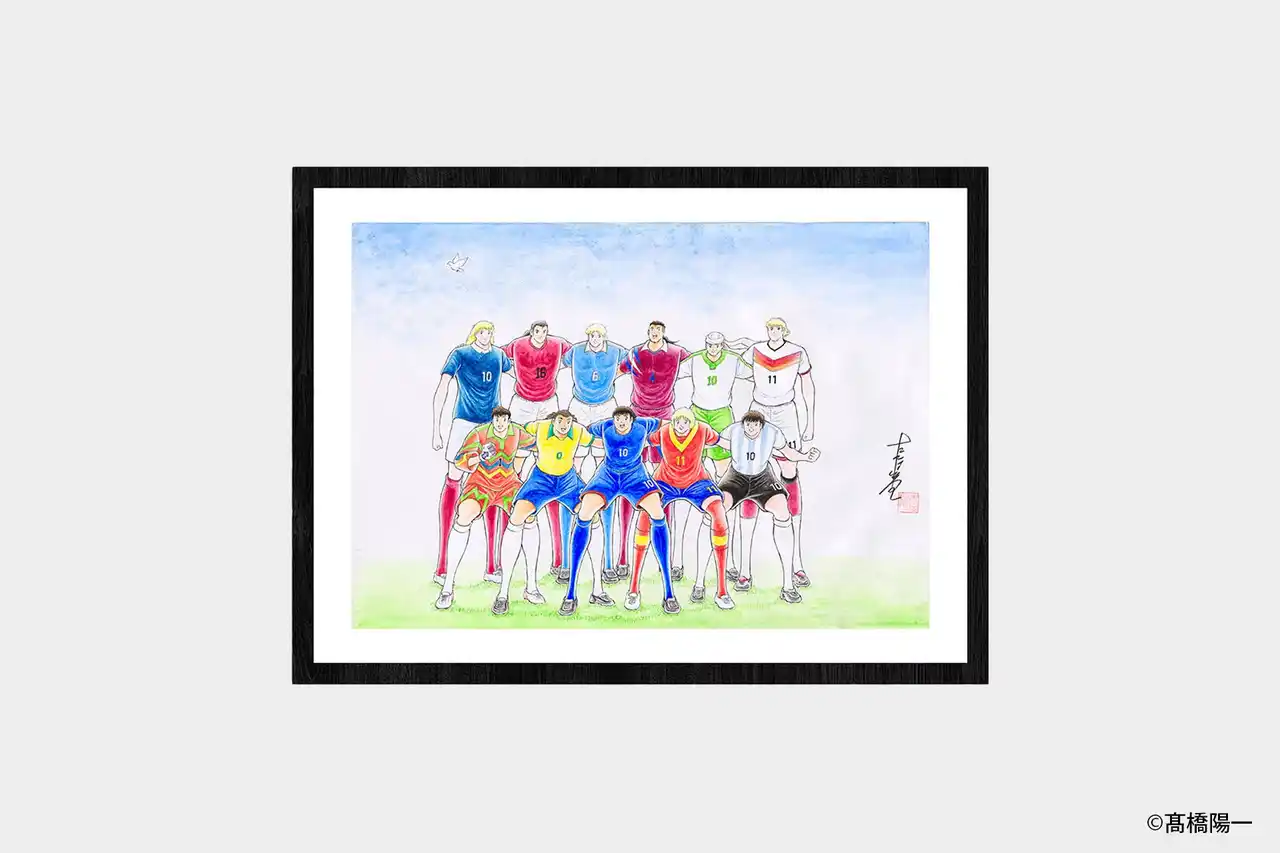 その象徴として、高橋陽一先生の描き下ろし新作を世界初公開します。スタジアムを背景に、各国のユニフォームを纏ったキャラクターたちが円陣を組む構図を軸に、後景には平和の象徴として各国の旗が舞うイメージを重ねています。この構成は「国や言葉の違いを越えて、同じチームになれる」ことの象徴であり、キャプテン翼が長く描いてきた“仲間と成長する物語”を、いまの時代のメッセージとして再提示するものです。 |