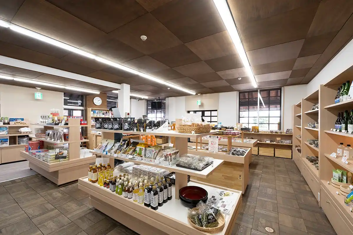 1階の物産コーナーでは、地場産品や選りすぐりのお土産を豊富に取り揃えております。夏場を除き販売される「草もち」や「おはぎ」は、地元の方々や観光客にリピーターが多い人気商品です。2階には菰野町観光協会が併設されており、より詳細な町内観光やイベント情報の提供を行っております。 |