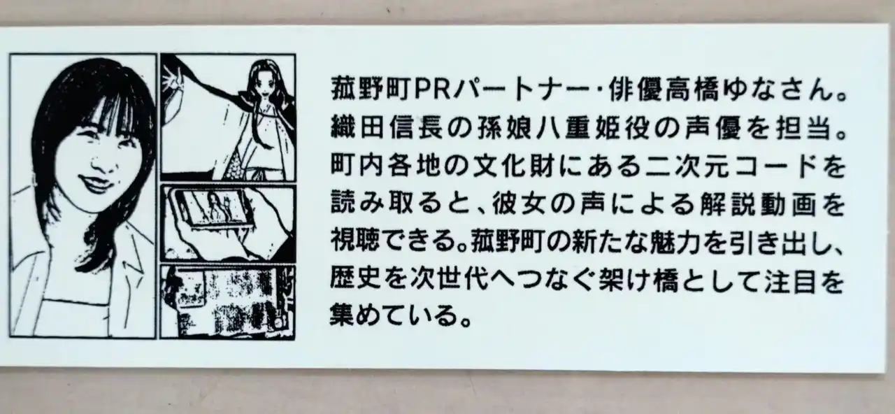 さらに本企画では、町内各地の文化財に設置された二次元バーコードと連動したデジタルコンテンツを展開しています。バーコードを読み取ることで、高橋ゆなさんによる解説動画を視聴でき、来訪者は歴史や文化への理解を深めながら、より充実した観光体験を楽しむことができます。 |