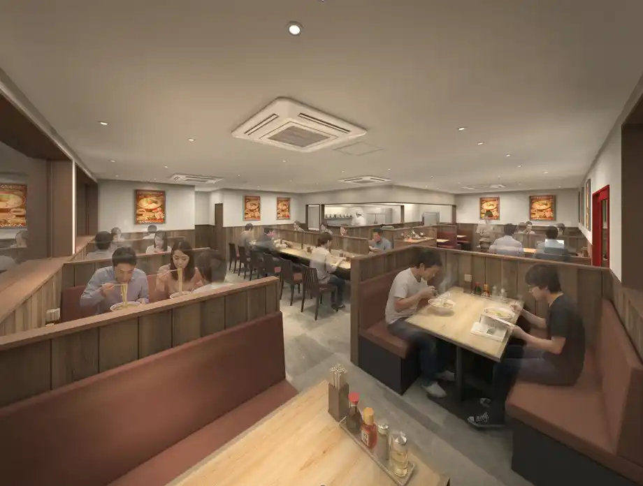 初の旗艦店となる鶴見店のコンセプトは「過去と未来の融合」。これまで“町ラーメン”として、いい意味で「大阪ふくちぁんでいいか」と愛されてきたこれまでのブランドイメージはそのままに、これからは老若男女幅広くご利用いただける“ファミリーラーメン”としての未来のブランドイメージを設計し、新しい「大阪ふくちぁん」の形にチャレンジしました。 |