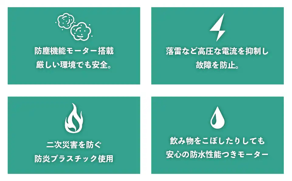 ●多重リスク対策(耐雷・防塵・防炎・防水) あらゆるトラブルからベッドを守り長寿命化 |
