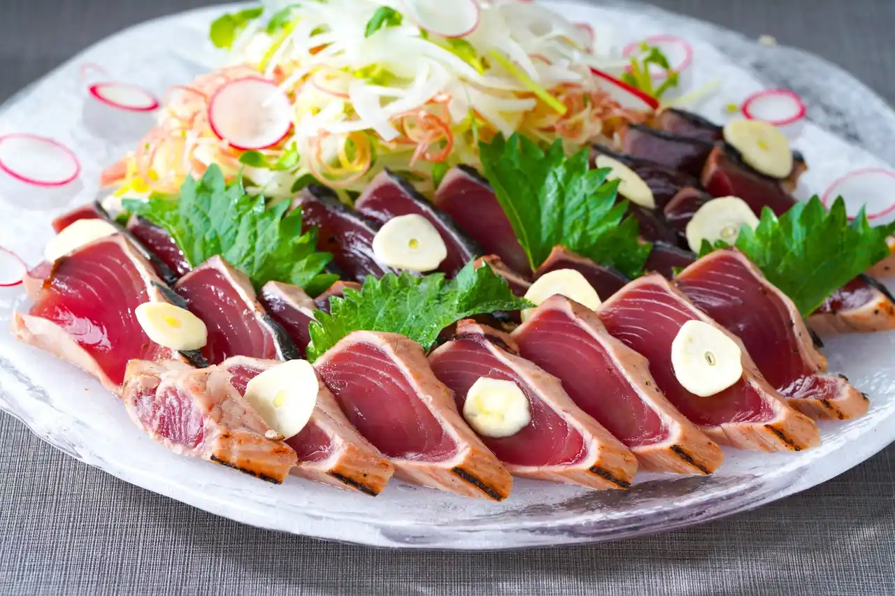 | 「カツオのたたき」「鮎の塩焼き」「豆サザエ旨煮」など、季節を感じる和の味覚もご用意。夏ならではの食材を取り入れたメニューは、お酒との相性も良く、ゆったりとした時間をお楽しみいただけます。 | |||||||||