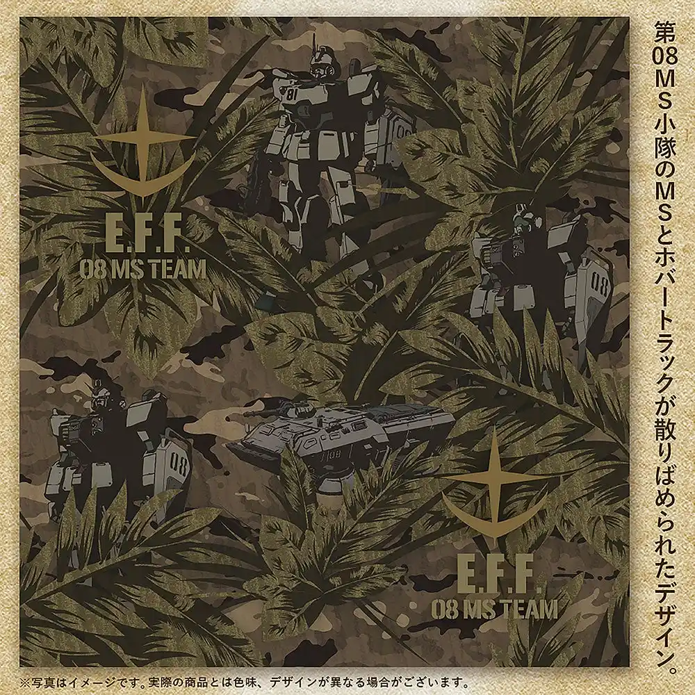 ・アロハシャツの柄の中に、第08MS小隊のMSとホバートラックが散りばめられたデザイン。 |