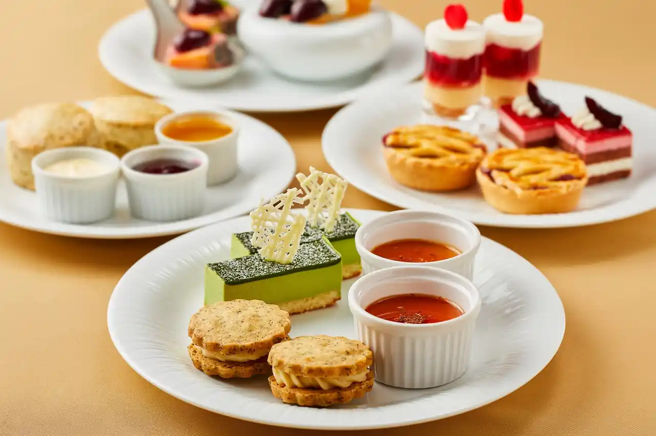 日本料理のエッセンスを取り入れたセイボリーも充実。甘味だけでなく、食事としての満足感も高める構成です。あわせて提供する紅茶のスコーンには、クロテッドクリームやチェリーのジャムを添え、味の変化を楽しめます。 |