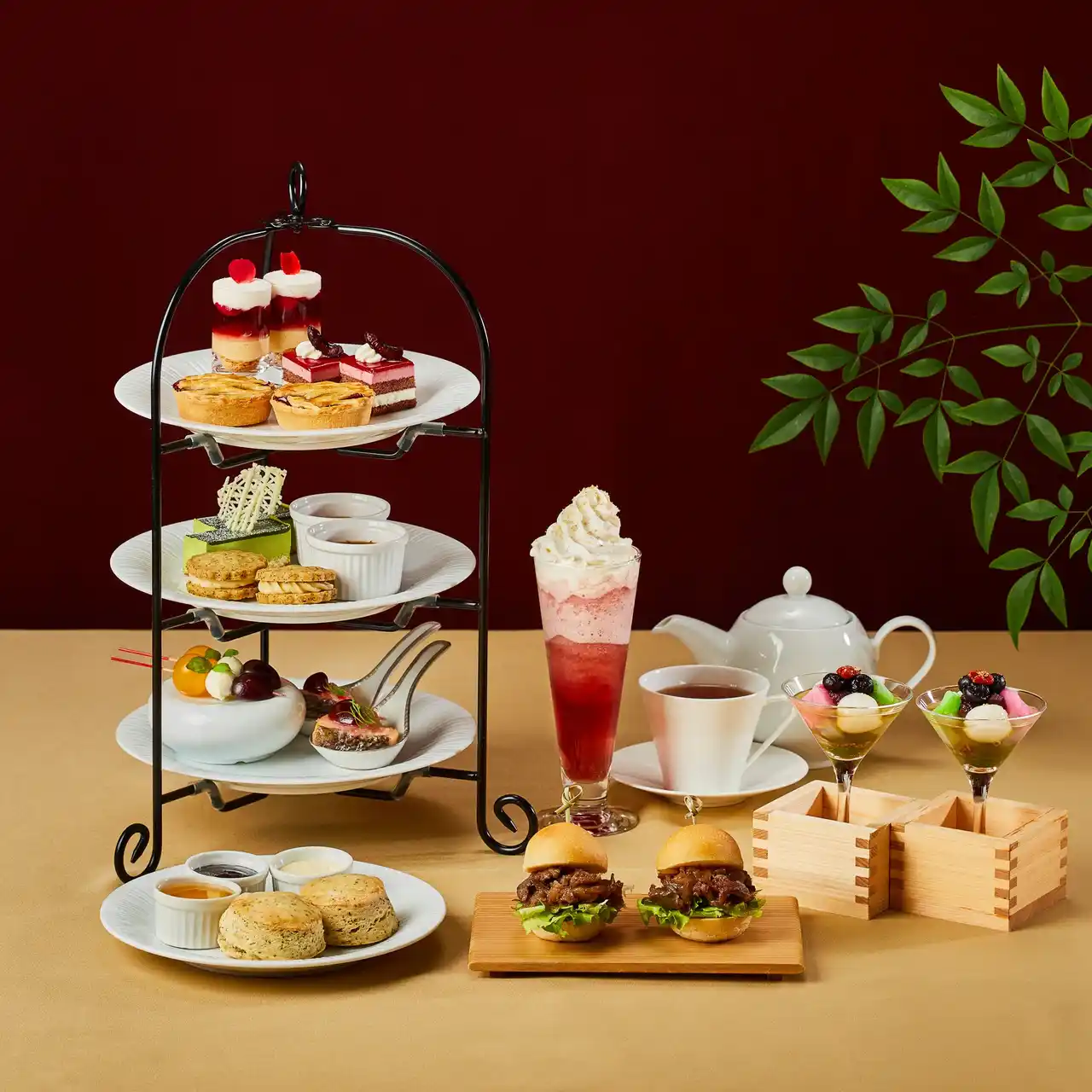 毎年初夏に好評を博す“お茶”をテーマにしたアフタヌーンティー。2026年は紅茶とチェリーを主役に、9階 日本料理「あけくれ」とのコラボレーションにより、和と洋が織りなす洗練された味わいを一段一段に表現しました。 |