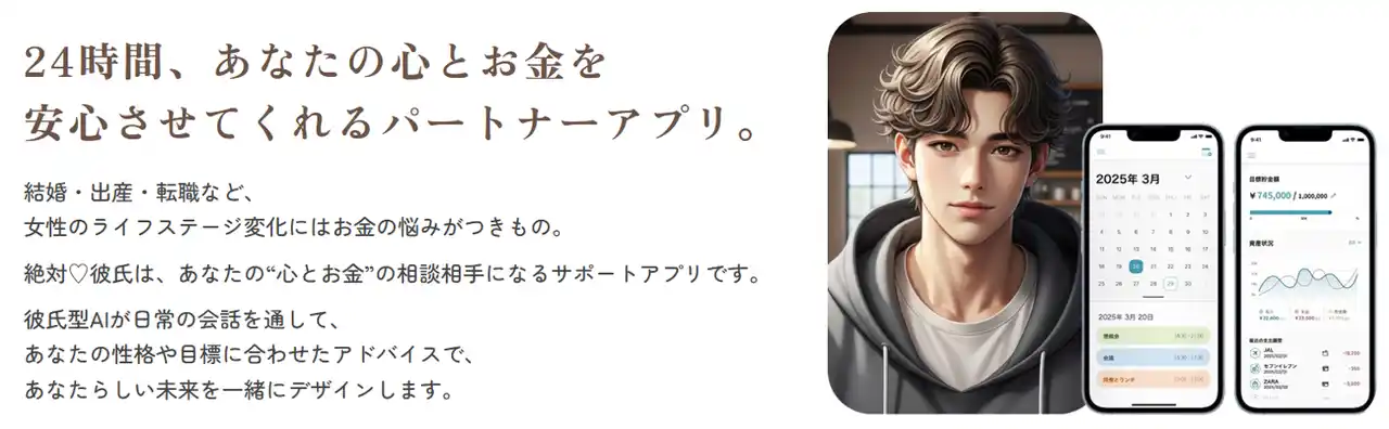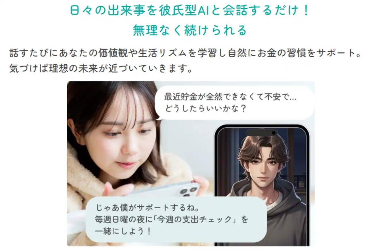 このような悩みに対し、本サービスでは「彼氏」という親しみやすい存在に対して構えずに、金融やライフイベントの話題を、日常会話の延長線で相談できる体験を提供します。 |
