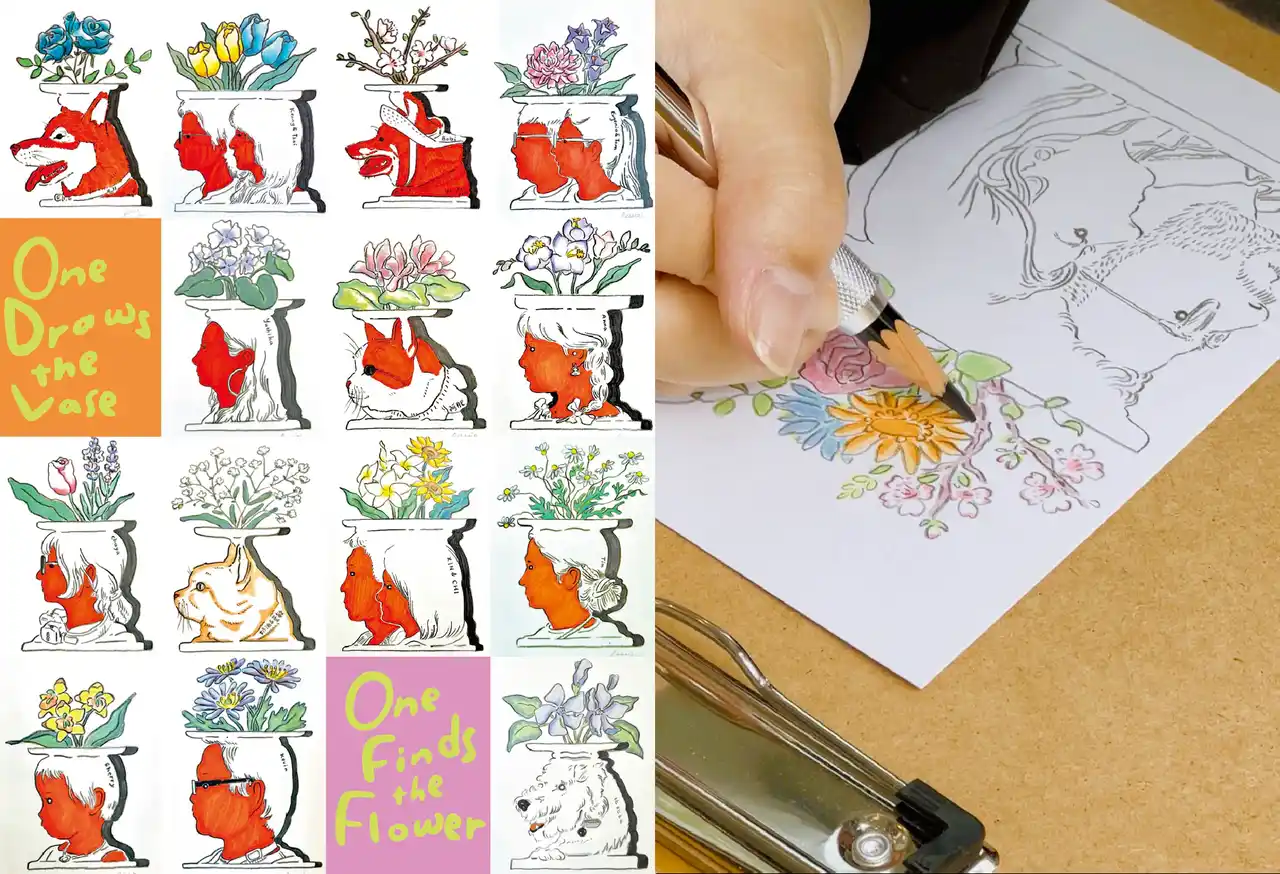 台湾と日本の作家夫婦によるユニット「Floti Studio」の似顔絵ワークショップです。夫が花瓶型の似顔絵を、妻が誕生花を添えた似顔絵を描きます。 |