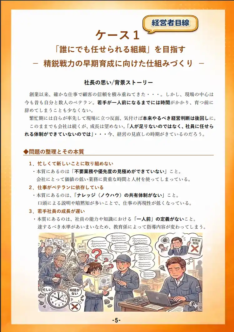 ●「誰にでも任せられる組織」を目指す ー精鋭戦力の早期育成に向けた仕組みづくりー |