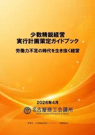 人口減少による人手不足が課題となるなか、中小企業が限られた人材で付加価値を高める経営のあり方を探るため、名古屋商工会議所では会員企業10社の取り組みをもとに『少数精鋭経営』を研究し、ガイドブックに取りまとめました。 |