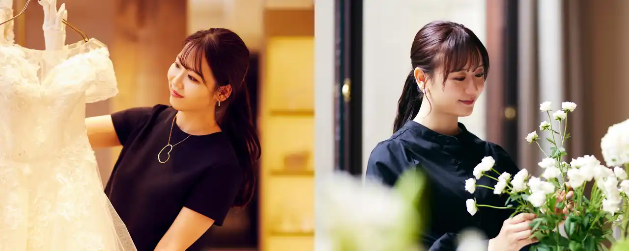 TAKAMI BRIDALは、クルーがキャリアを磨き続けられるよう勤続年数や年齢に関係なく個々のスキルや能力、成果、生産性を重視する「ジョブ型」のキャリアアップ制度を導入しています。また、ライフステージが変わっても安心して働き続けられるよう、育児短時間勤務制度やウェルカムバック制度(一度退職してもまた復職できる制度)などさまざまなサポート制度・福利厚生も整えています。多様な個性が輝き、切磋琢磨しながらお互いを高め合える環境こそが、世界中のお客様に愛されるサービスの源泉です。 |