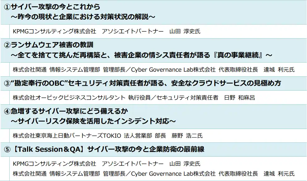 本イベントでは、こうしたサイバー攻撃の脅威の現実を正しく知り、「事業を止めないために、何を備えるべきか」を考える場として開催いたします。 |