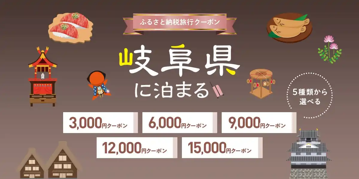 岐阜県の宿泊を対象としたツアーで使えるふるさと納税旅行クーポンです。 |