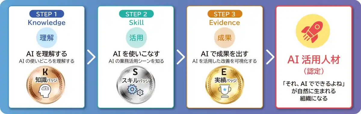 AI活用の“二極化”が進む中、株式会社デジタル・ナレッジは、これまで培ってきた教育設計のノウハウとデジタルバッジの仕組みを活かし、その格差解消に向けた実践的なモデルを提示することで、企業のDX推進に貢献してまいります。 |