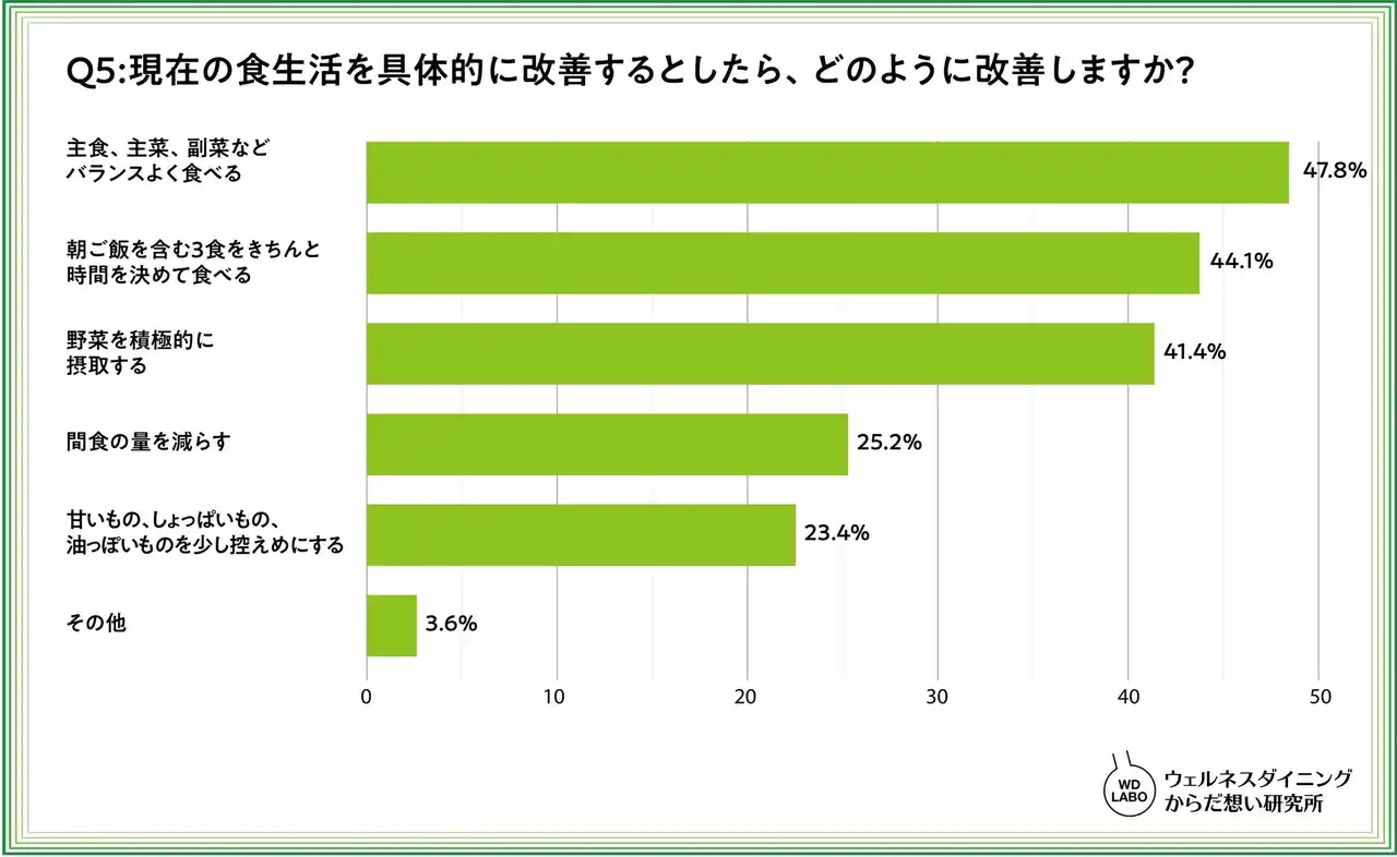 多くの人が栄養バランスの取れた食事や、規則正しい食習慣の改善への意識が表れていた。