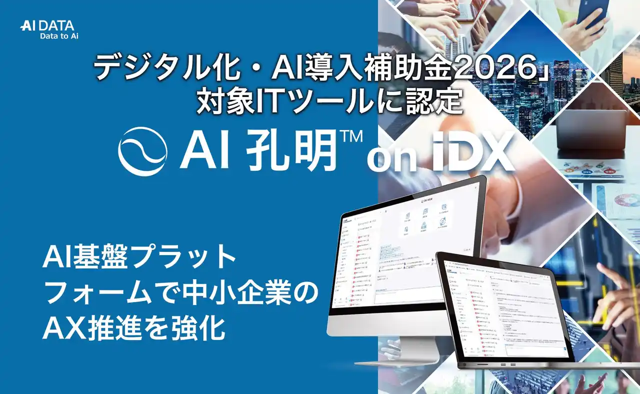 【AIデータ株式会社】 AIデータ社、「デジタル化・AI導入補助金2026」の対象ITツールに認定! AI基盤プラットフォーム「AI孔明 on IDX」で中小企業のAX推進を強化