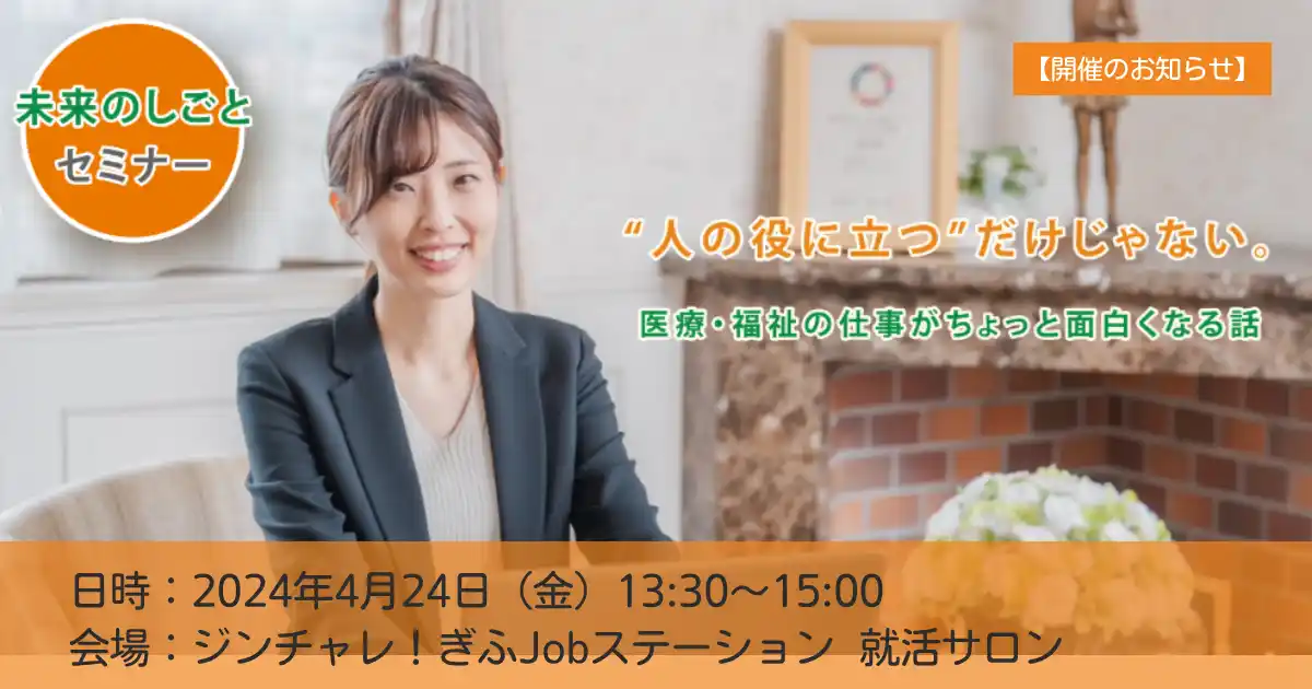 若年層の就労支援を行う岐阜県若者サポートステーション(運営:一般社団法人サステイナブル・サポート)は、2026年4月24日(金)、働くことに不安を抱える15歳~49歳を対象に「未来のしごとセミナー」を岐阜市で開催します。 |