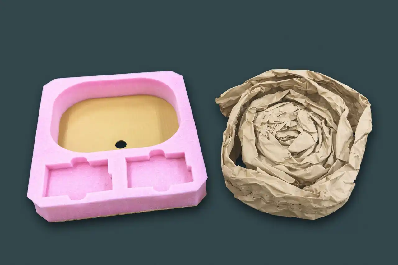 当社標準製品の包装材をリサイクル可能な紙系包装材に変更 |