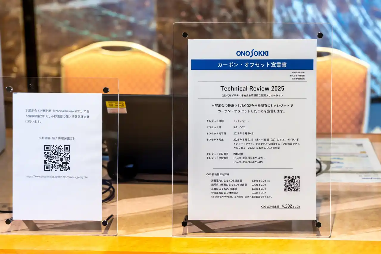 当社が2025年5月21日~5月23日に神奈川県横浜市のヨコハマ グランド インターコンチネンタル ホテルで主催した「小野測器テクニカルレビュー2025」において発生した以下のCO2排出量(会場設営に関わる物品輸送や会場での使用電力、当社社員の移動によるもの等)5 t分を当社所有のJ-クレジットでオフセットしました。ちなみに、2024年5月に実施した同イベントのCO2排出(4t分)カーボンオフセット済みです。 |