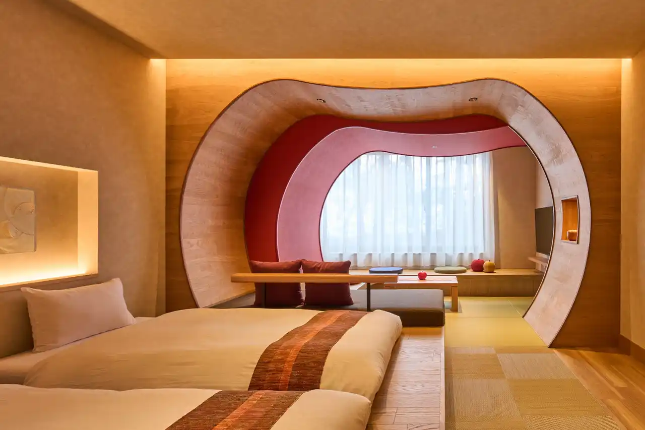 青森の文化を目一杯満喫できる温泉宿「青森屋 by 星野リゾート」は、2026年4月22日より、りんごの優美な曲線に包まれる心安らぐ新客室「ほっこりんご和室」の予約受付を開始します。青森の代名詞ともいえるりんごを空間からも堪能できるよう、りんごアーチをはじめとした象徴的なデザインを客室の随所に取り入れました。客室を彩るのは、地元職人が手掛けるオリジナルの意匠です。役目を終えたりんごの木材と伝統工芸を掛け合わせたオブジェやりんご和紙の壁掛けが、空間に温もりを与えます。