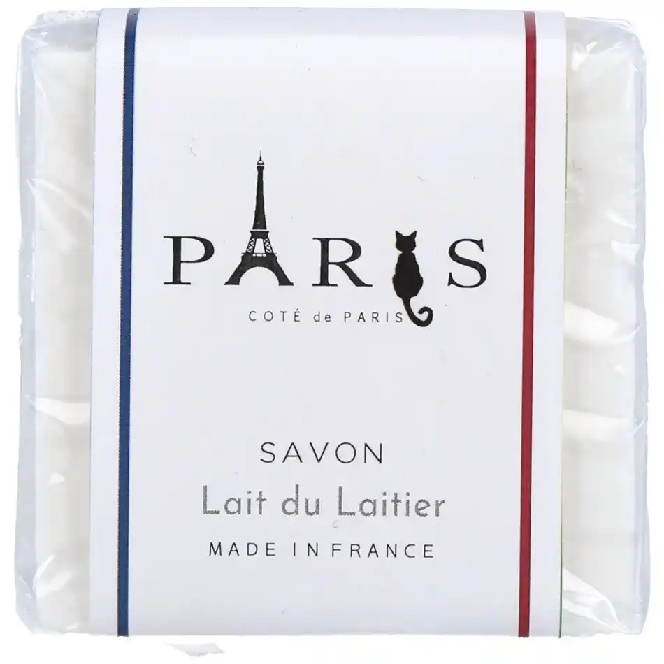 デザインには、エッフェル塔、フランス国旗、そしてパリに暮らすネコが描かれています。パッケージの裏面には、ほかのネコや足跡のかわいらしいデザインが隠れています。 |