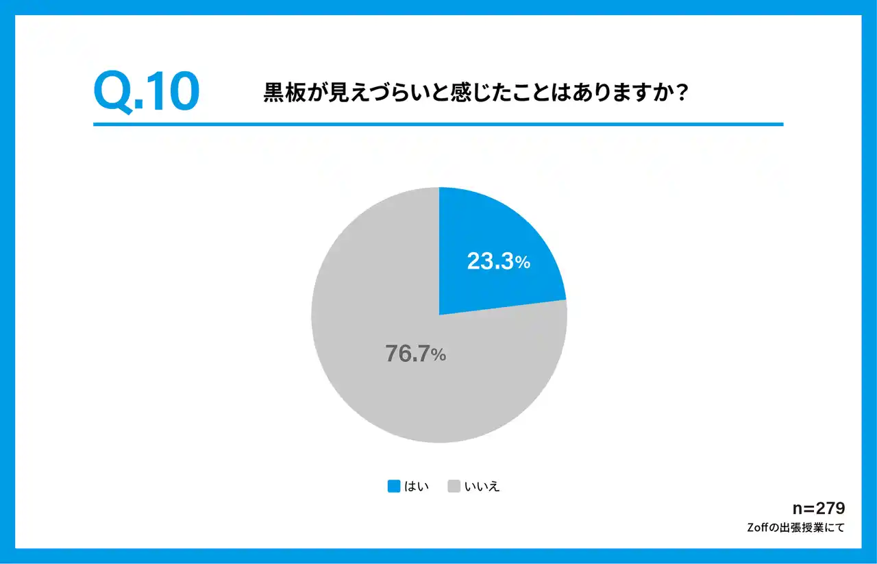 ・23.3%の子どもが「黒板が見えづらいと思ったことがある」と回答。 |