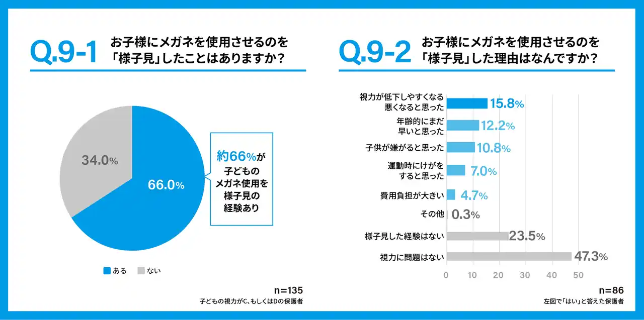 その中で、視力矯正が必要な子どもであっても、「とりあえず様子をみる」が選択され、黒板が見えづらいなど、学習や日常生活に影響を感じながら過ごしているケースが存在しています。 また、子どものメガネについては、安全性や壊れにくさを重視する声が多い一方で、運動時の扱いにくさや破損への不安も大きく、子どもの生活シーンに合ったメガネを選ぶことの重要性が浮き彫りになりました。