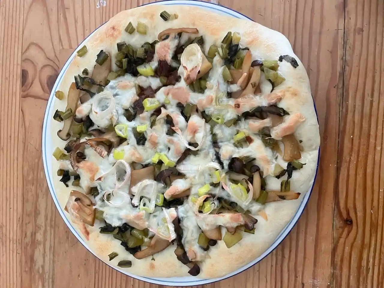 野沢菜とキノコのおやき風ピザ |