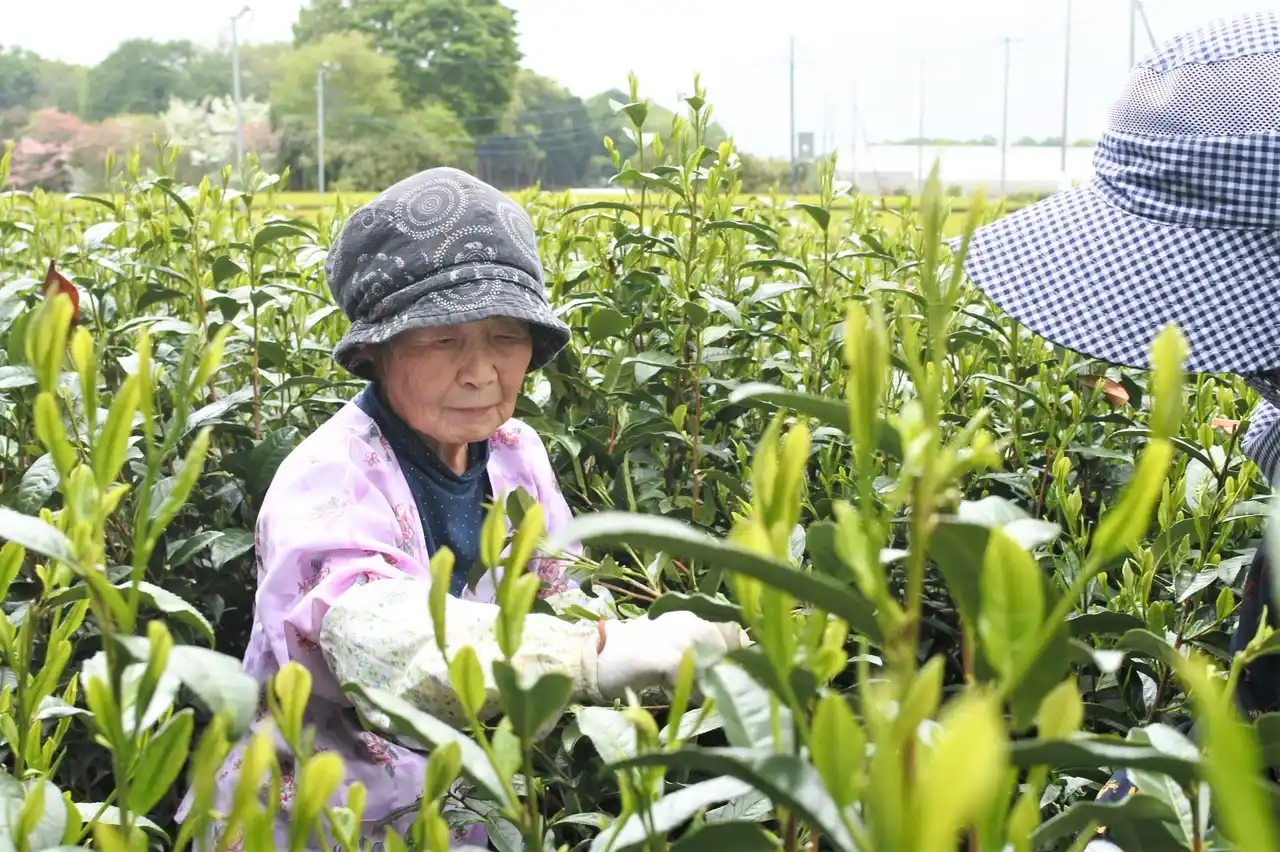 2026年4月21日(火曜日)、狭山市加佐志の茶園「奥富園」の茶畑で、路地ものの新茶の摘み取り始まりました。「摘み子(つみこ)」を務めるのは、近所の主婦ら約30名。鮮やかに色づき15センチメートルくらいに伸びた新芽を慣れた手つきで丁寧に摘み取り、竹かごに入れていきます。この日収穫されたのは、狭山茶の埼玉県茶奨励品種の一つである「ふくみどり」。さわやかな香りとまろやかな甘みがあるのが特徴です。