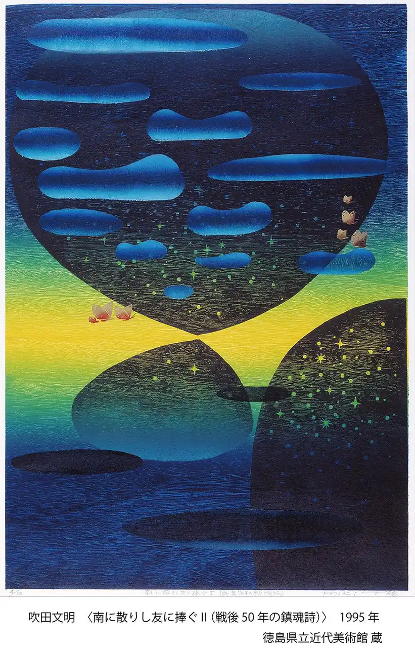 徳島出身の版画家・吹田文明(1926年-)の軌跡をたどる展覧会です。作家の人生をたどりながら、当館所蔵の作品を中心に、一編の人間ドラマを追体験するように振り返ります。また、同時代の作家や現代版画の動向を紹介するトピック展示を設け、戦後日本版画のなかで吹田文明が占める位置を改めて見つめ直します。展示の最後には、「徳島版画」と連携し、版画の魅力を伝えるコーナーを設けます。 |