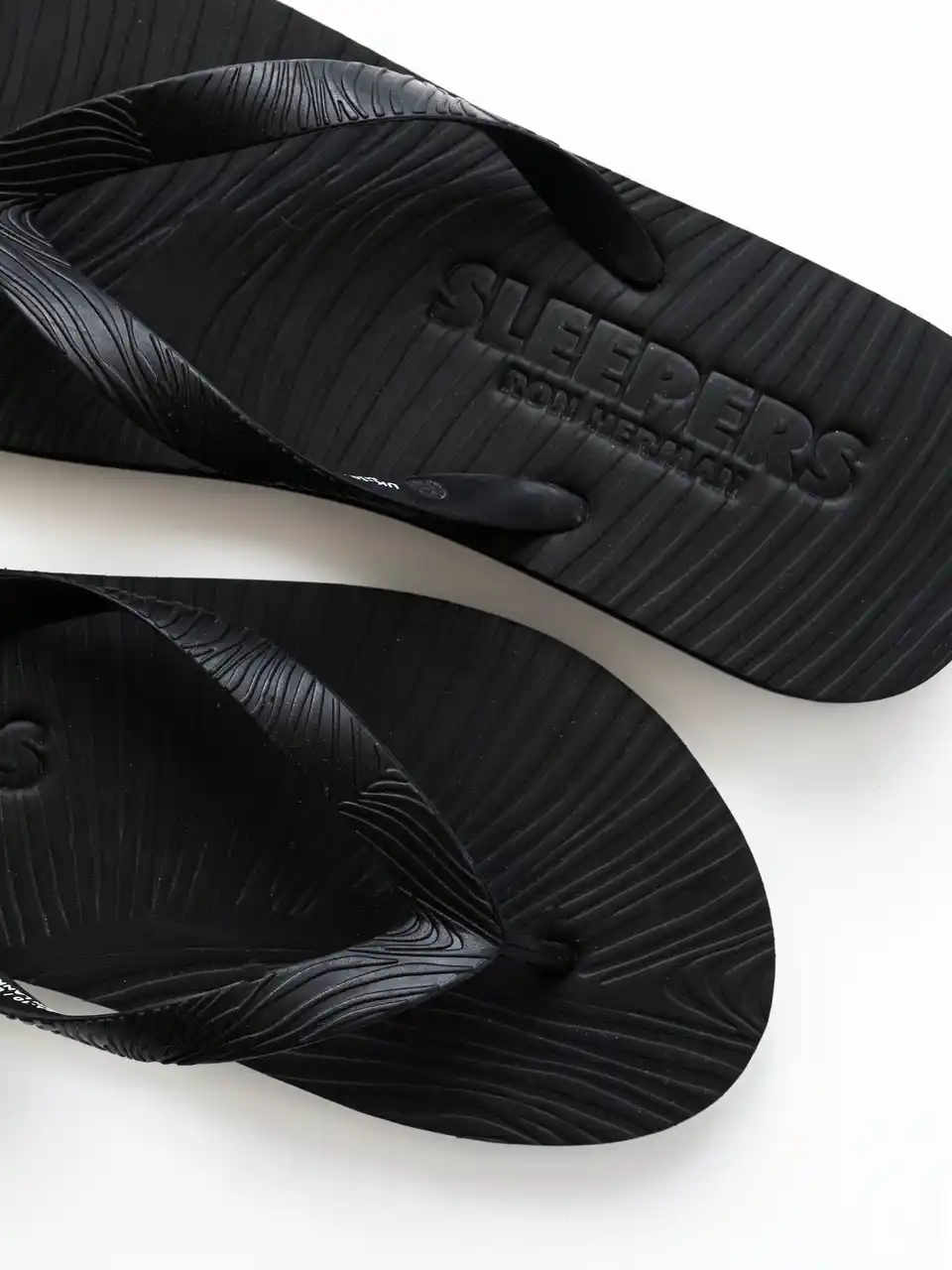 カラーは幅広いスタイルに合わせやすいブラックの1色展開。ソール上部には「SLEEPERS」と「Ron Herman」のダブルネーム刻印を施し、特別感をさりげなく表現しました。ビーチはもちろん、街にも自然に溶け込むバランスへと仕上げています。