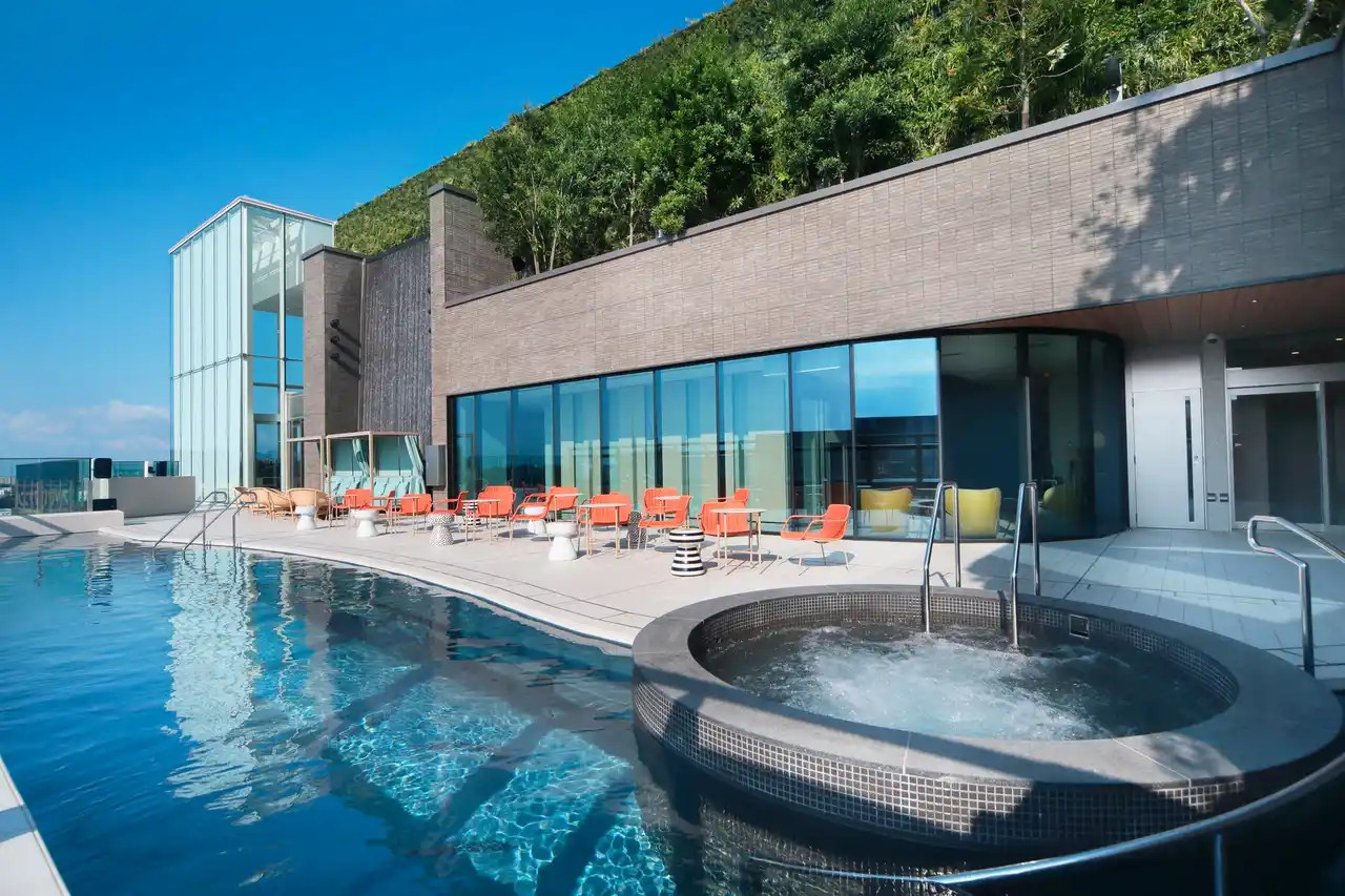 博多駅直結、徒歩1分という都心にありながら、屋上にはオープンエアの「泳げる天然温泉」であるプール付きスパを設置。さらに客室は全室30平方メートル 超で、全ての客室に洗い場付きのゆったりとしたバスルームを備えています。アクティブな旅にも、リラックスの旅にも適した、「都心のリゾート」を楽しめるラグジュアリーホテルです。 |
