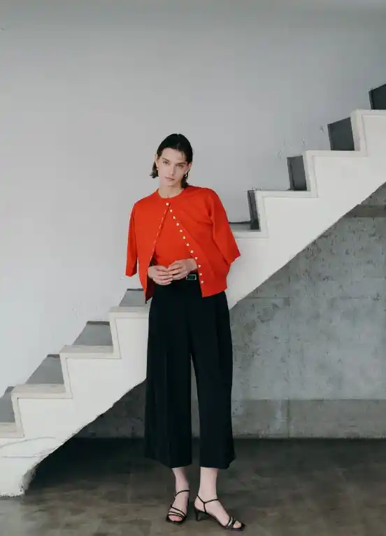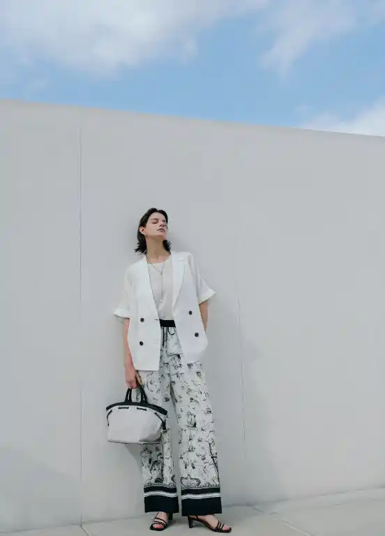 初夏へ向かうこの時期に、色や柄がもたらす前向きなムードを取り入れて。クロップドワイドパンツの新しい丈バランスを軸に、配色ニットやスカーフプリント、ボーダーのパターンをミックスして、華やかさと今年らしさを両立したスタイルを提案します。シーズンカラーに赤を効かせることで、都会的で品のある今の空気感を表現します。 |