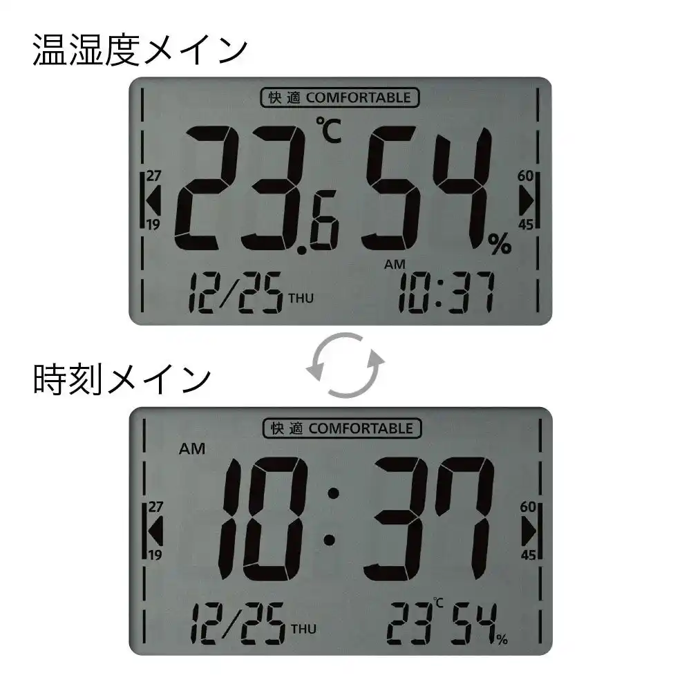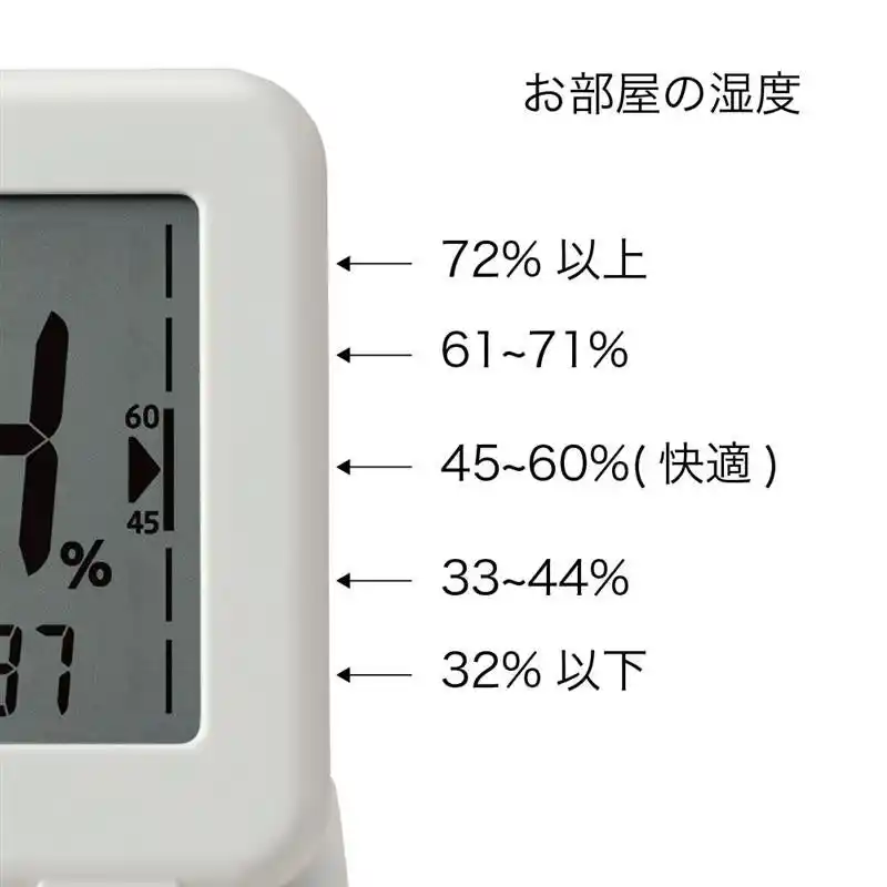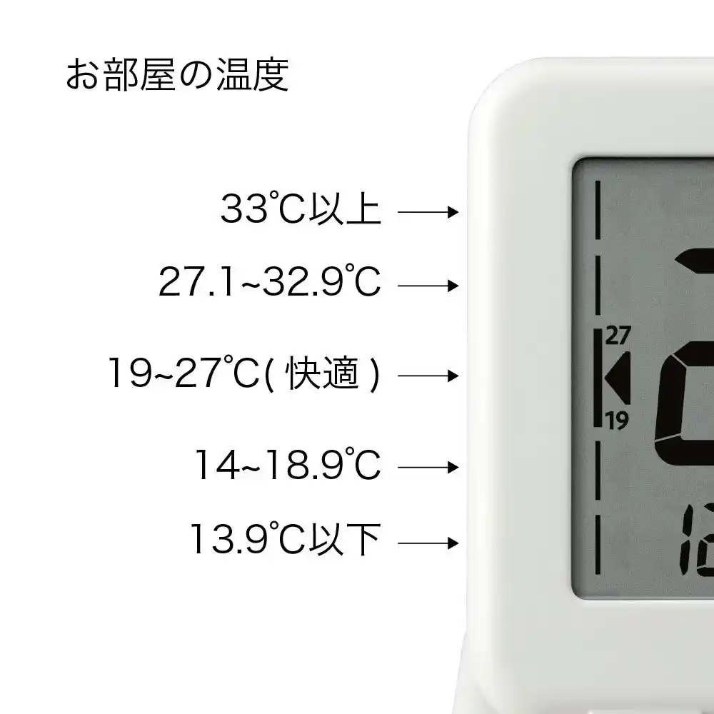 | 見やすい液晶画面で現在の温度と湿度の状態をひと目で確認できます。 | ||||||||||||||