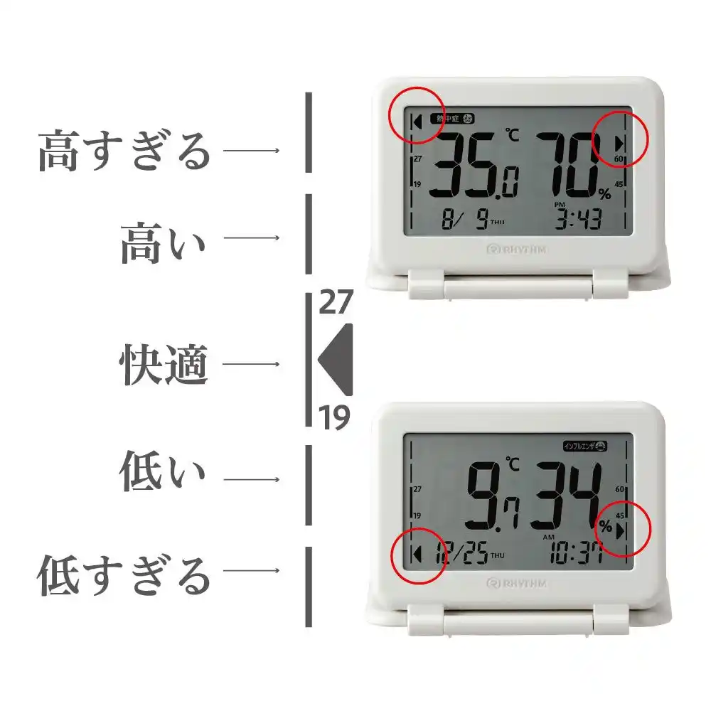 | 乾燥や温度変化で体調を崩しやすい旅行中や入院時の環境確認に役立ちます。 | ||||||||||||||