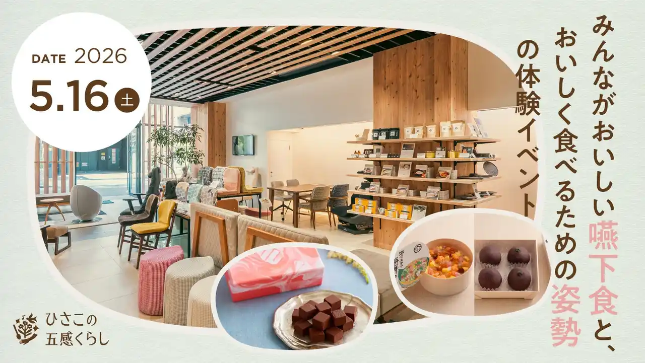 作業療法士の野村寿子がプロデュースする「ひさこの五感くらし 南青山店(東京都港区)」は、2026年5月16日(土)、摂食嚥下に困難を抱える方とそのご家族、そして一般の方々を対象とした「みんながおいしい嚥下食と、おいしく食べるための姿勢の体験イベント」を開催いたします。 |