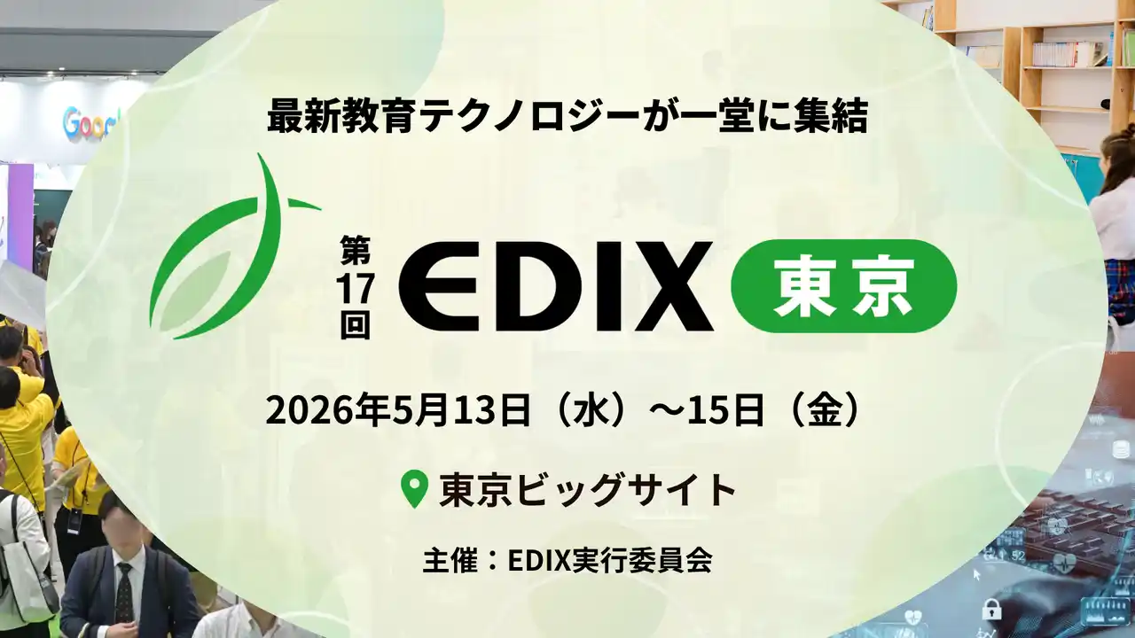 EDIX実行委員会(企画運営:RX Japan合同会社(本社:東京都中央区、代表執行役員社長:田中岳志))は、2026年5月13日(水)から15日(金)の3日間、東京ビッグサイトにて、日本最大級の教育分野の総合展「第17回 EDIX(教育総合展)東京」を開催いたします。 |