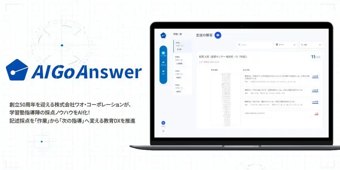 社名:株式会社ワオテック(国語記述問題AI自動採点システム「AI Go Answer」)/ |