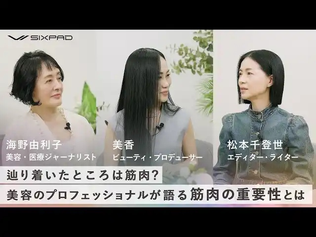 動画に出演するのは、エディター・ライターの松本千登世さん、美容・医療ジャーナリストの海野由利子さん、ビューティ・プロデューサーの美香さん。美容のプロフェッショナルとして美しさを見つめてきた3人が、SIXPADのトレーニング体験をきっかけに、身体との向き合い方について語り合います。 |