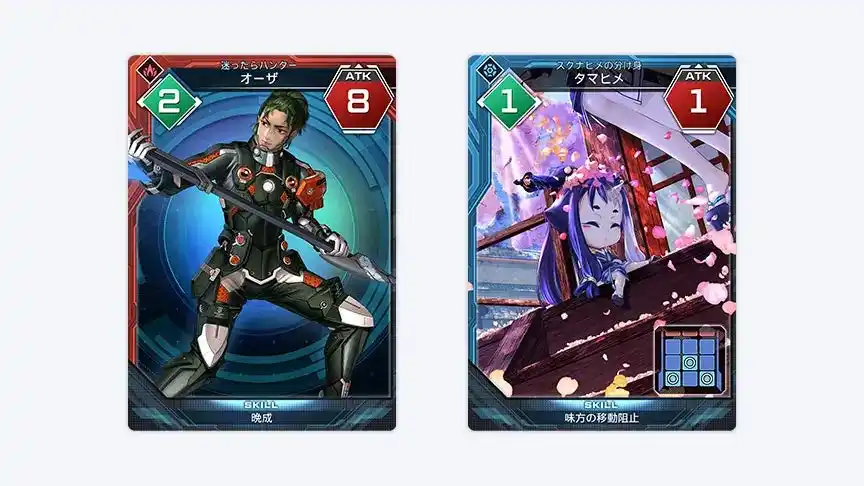 召喚ターンによって戦力値やスキルの効果が変化するカードが初登場。また、移動に対応してデバフを与える刻印効果や味方への移動不可効果の付与など、ライン移動戦略に対抗するカードも追加されます。 |