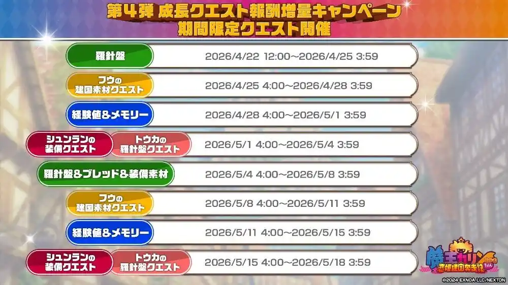 【4】効率的に戦力を強化!「成長クエスト報酬増量キャンペーン」開催! |