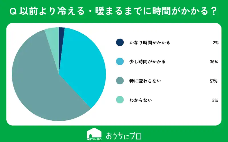 | エアコンを付けた時、以前よりも冷える・暖まるまでに時間がかかるようになりましたか? | ||||||||||||||