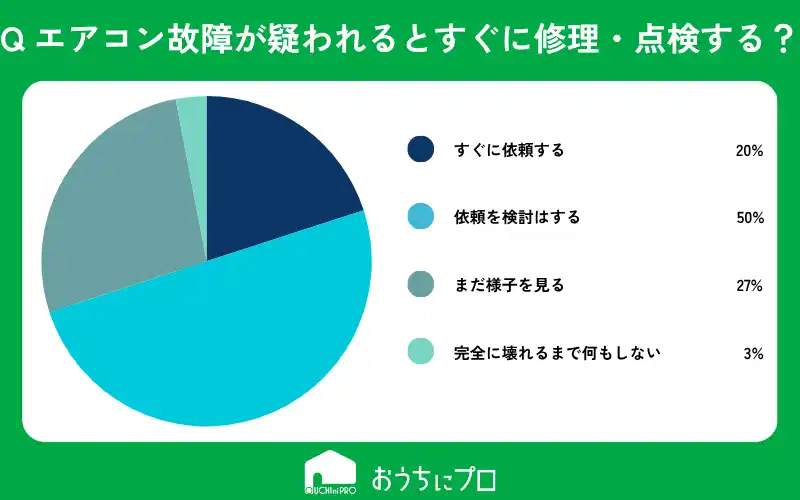 | エアコンの故障が疑われる時、すぐに修理や点検を依頼しますか? | ||||||||||||||