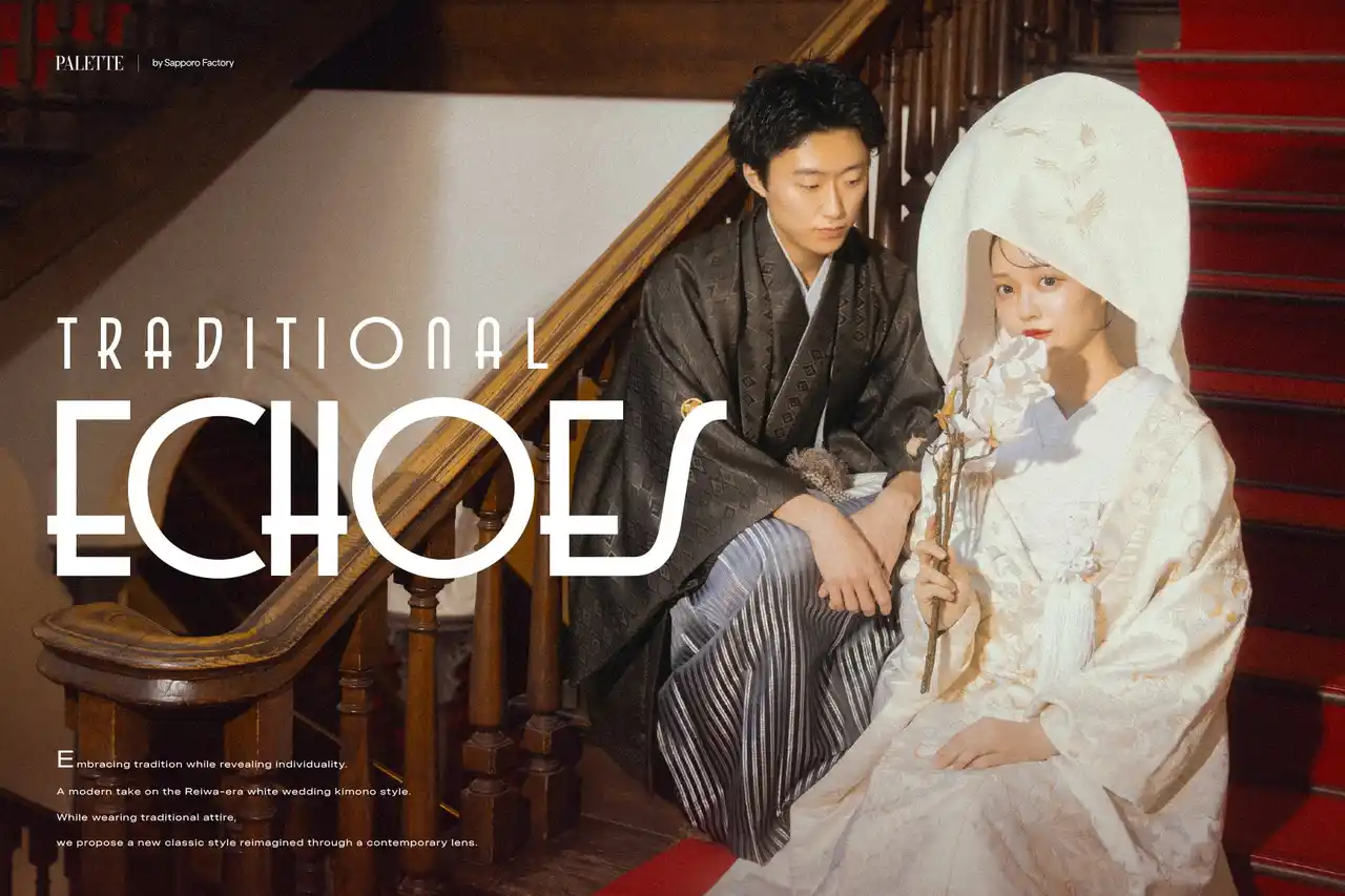 今回のビジュアルでは、北海道庁という歴史的建造物をロケーションに採用。クラシカルな空間に差し込む柔らかな光と影を活かし、時間のレイヤーを感じさせる演出により、伝統が現代に“反響(ECHOES)”する瞬間を切り取っています。 |